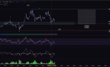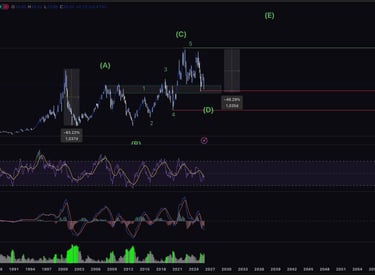 Current structure suggests a correction toward Wave (D) but the region below is strong historical support.