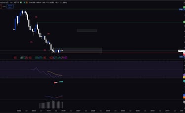Price is currently consolidating inside the 39–45 EUR accumulation zone, forming a stable base.